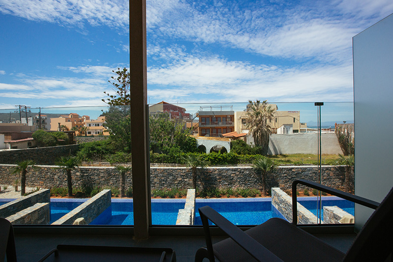 Das Deluxe-Gästezimmer mit Blick auf den Garten bietet den Komfort und die Annehmlichkeiten, die den Standard im Aphrodite Beach mit dem zusätzlichen Bonus eines individuellen Pools in einem wunderschön angelegten Garten abrunden.